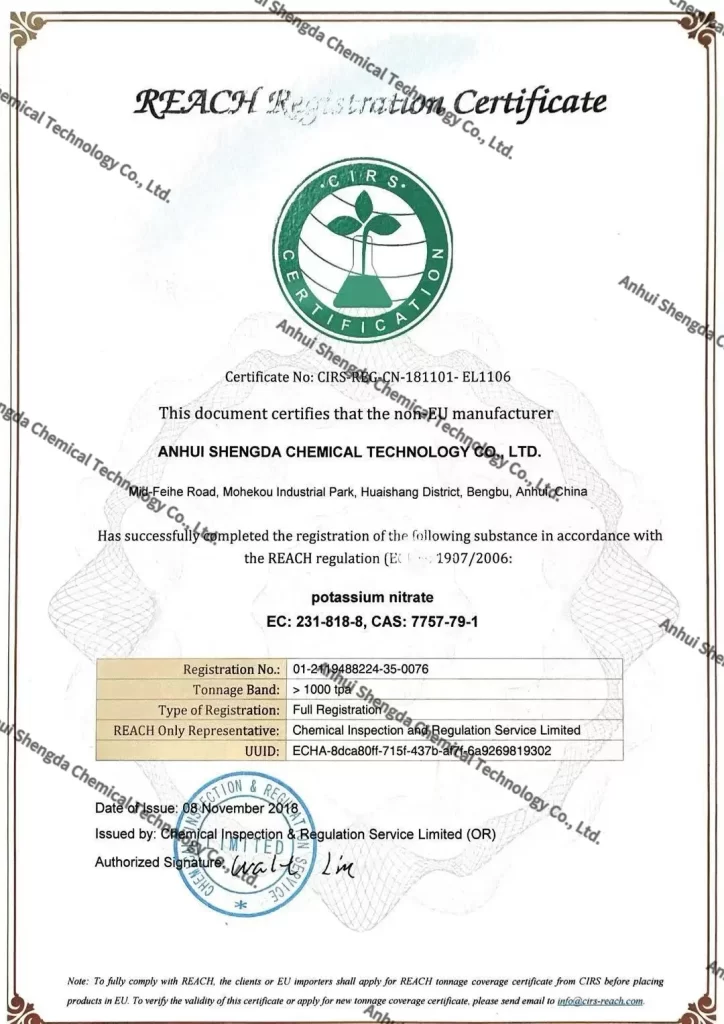 Our 99.9% high-purity potassium nitrate powder is a core raw material specially developed for the chemical strengthening of high-end window touch protection glass panels in mobile phones, digital products, automotive touch control, smart wearables and smart home devices. This product has obtained EU REACH certification and complies with the world’s most stringent environmental protection and safety regulations.The main content is ≥99.9%. It features ultra-high purity, low impurities, and excellent chemical activity, which significantly improves the stress value, surface flatness, appearance yield, and tempering life of glass covers. The product quality has consistently maintained a leading level in China.